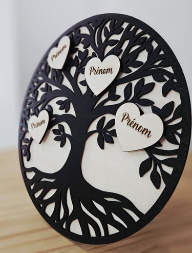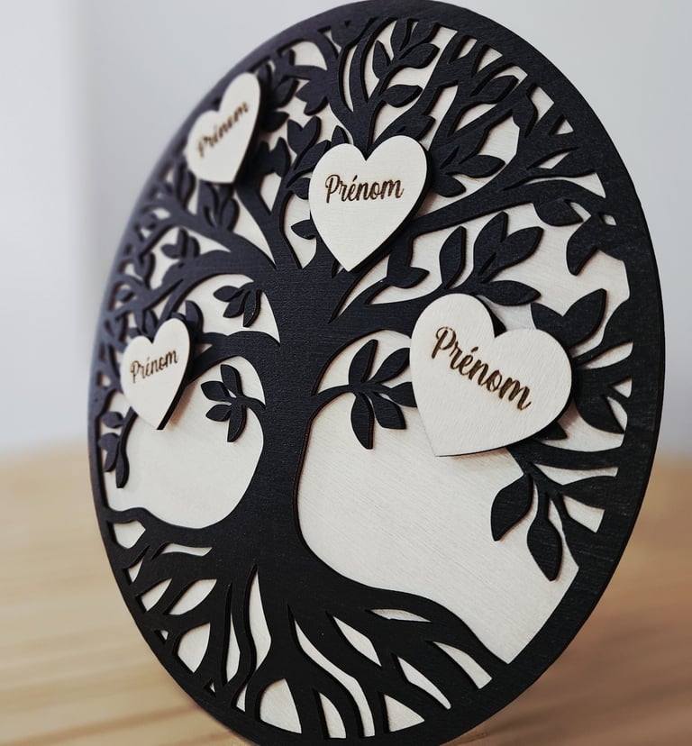 Personnalisé avec les prénoms de votre famille au cœur de l’arbre, un cadeau unique, chargé d’émotion, idéal pour toutes les occasions.